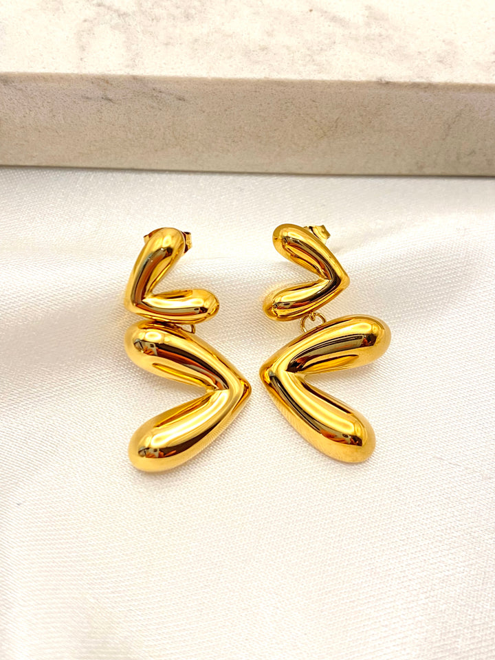Arete Doble Corazon Inflado Acero