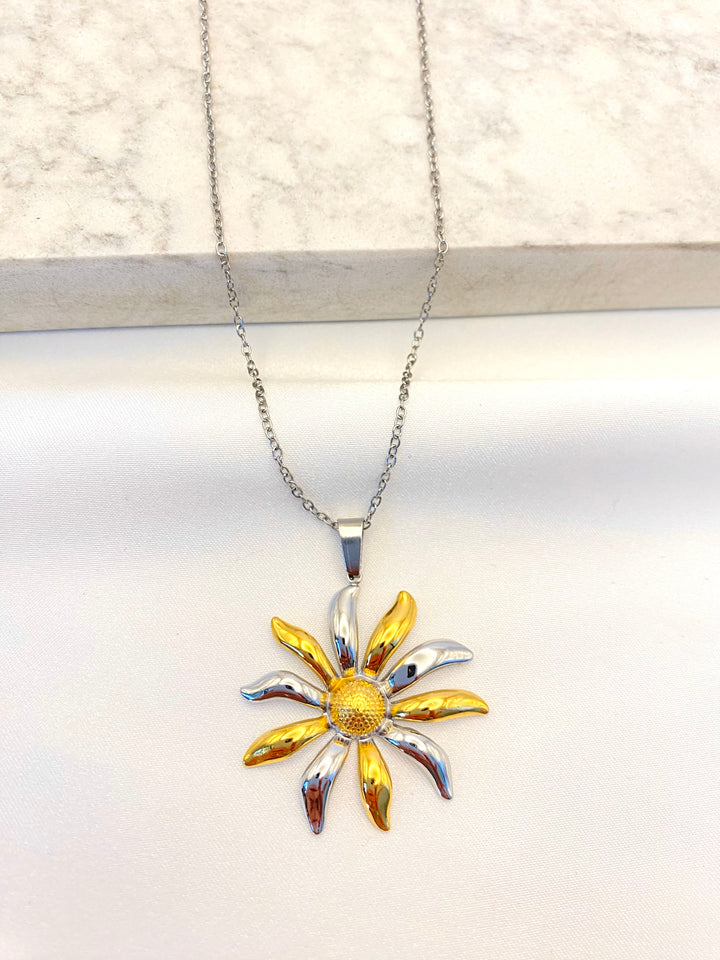 Collar Flor Bicolor Acero