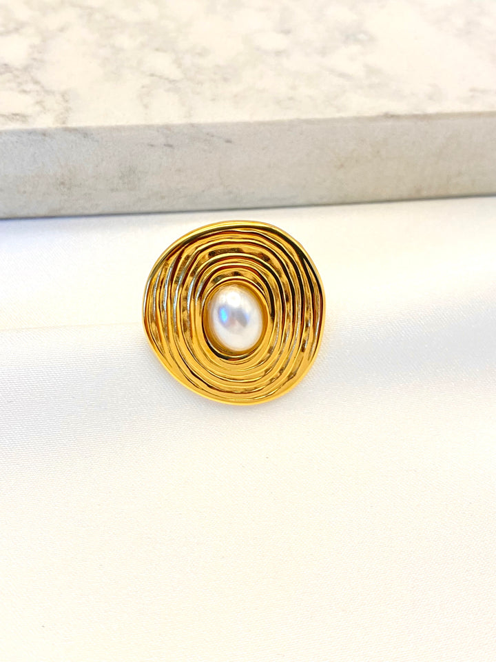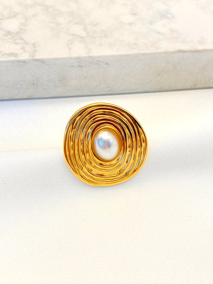 Anillo Plano Perla Acero