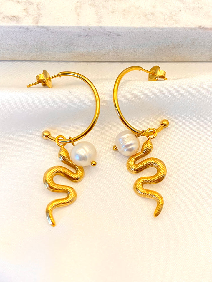 Arracada Serpiente Perla Acero
