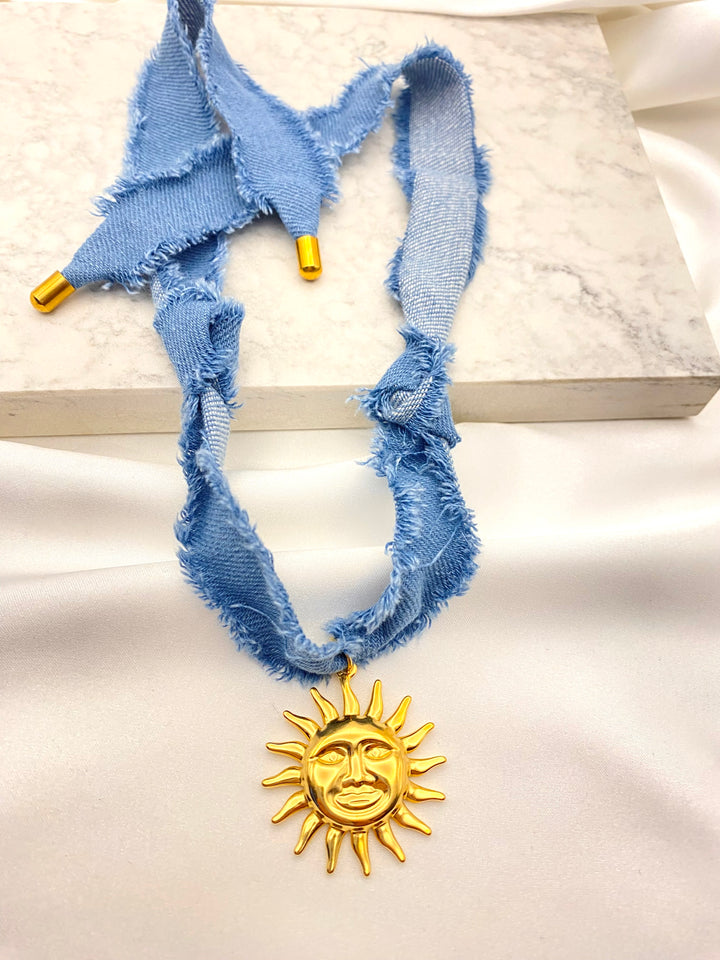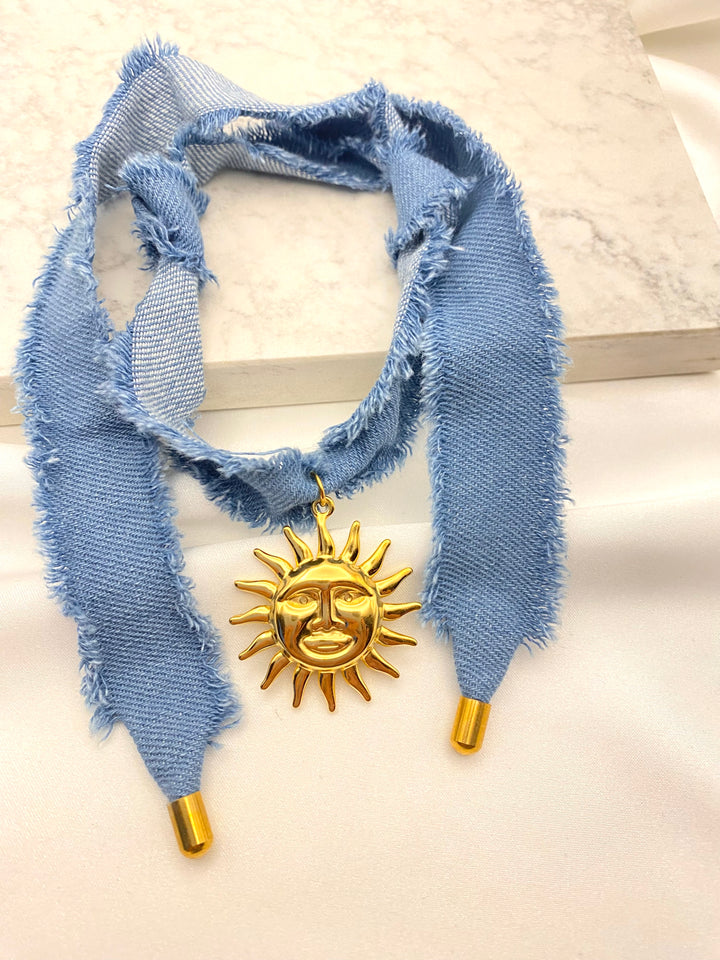 Accesorio para dama de usos varios (collar, pulsera, accesorios para bolso) de material textil y dije de Acero