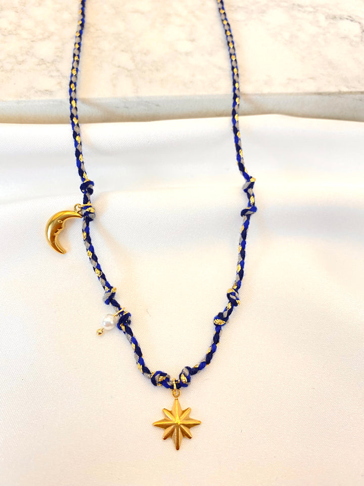 Cadena de Hilo con Dijes de Acero Inoxidable de 43cm + Extensión