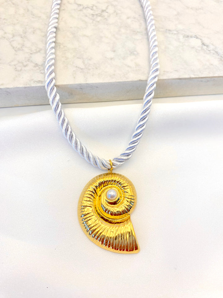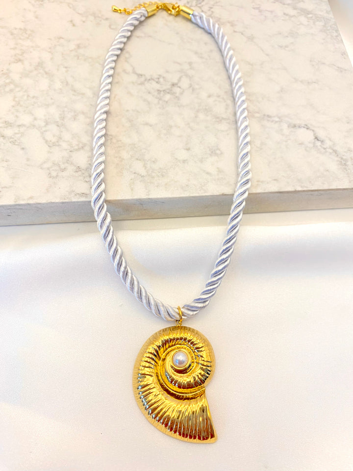 Cadena de Material Textil y Dije de Acero Inoxidable