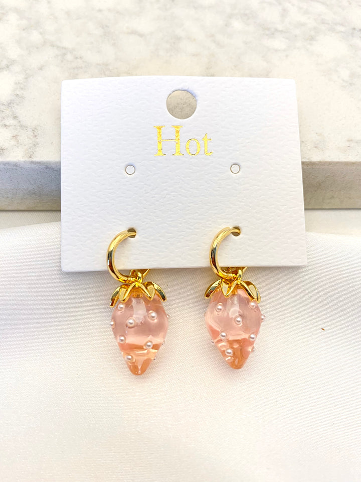 Par de Aretes de Chapa de Oro y Material Acrílico