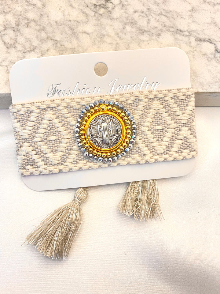 Pulsera Ajustable de Material Textil y Chapa de Oro