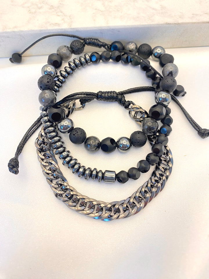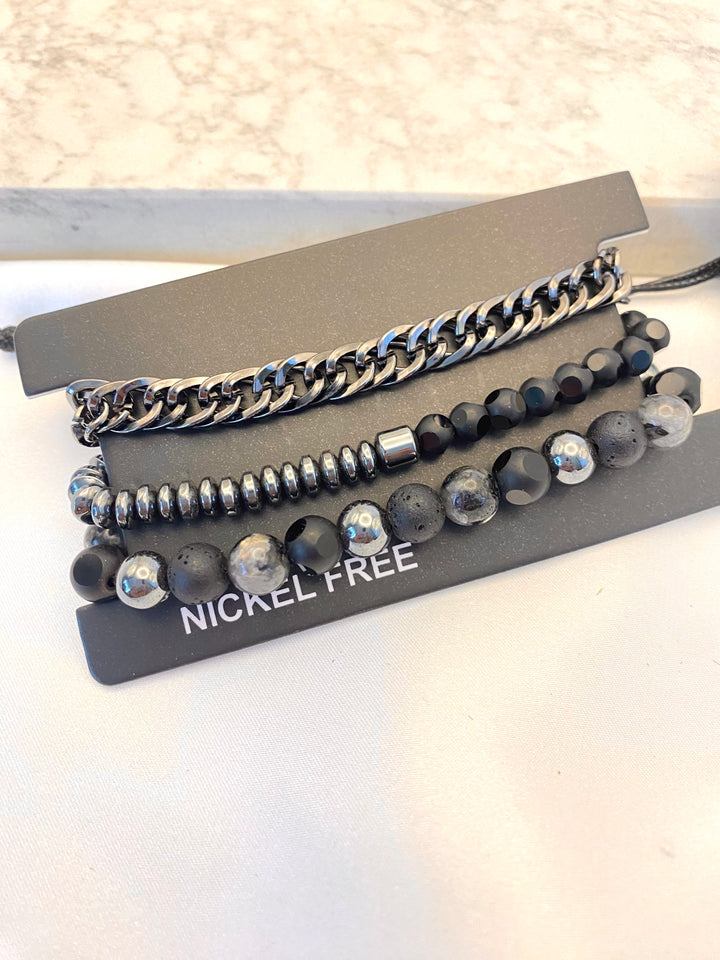 Set de 3 Pulseras de Acero / Caucho / Materiales Texiles y Sinteticos